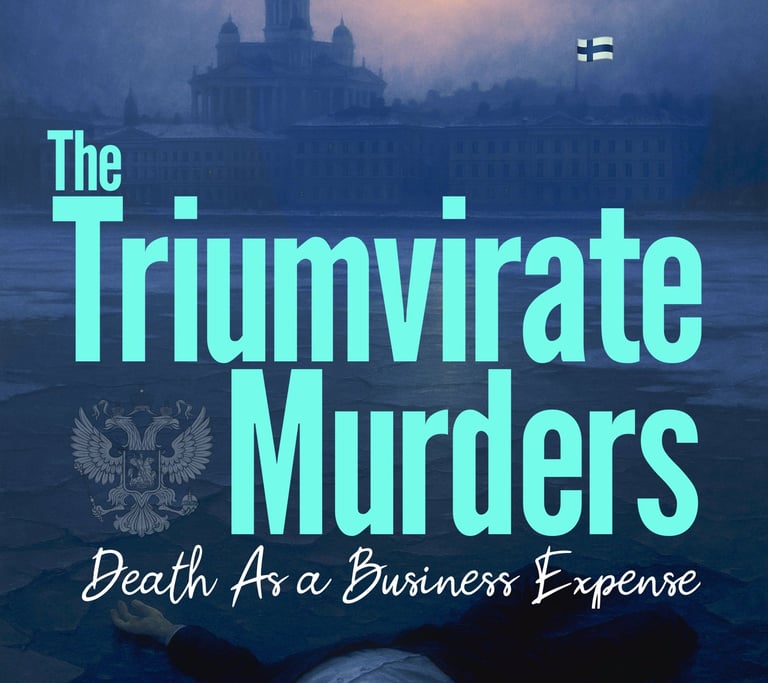 When celebrated editor Pekka Wall and his novelist partner Tuomas Ylivire—Finland’s most-watched queer couple—step into the President’s Independence Day gala, a whisper in the crush of tuxedos and tiaras pulls them into a scandal that snakes from media boardrooms to back-street safehouses. What emerges is a ruthless “triumvirate” of power players trading in blackmail, sex, and murder— with evidence that brushes the Kremlin.